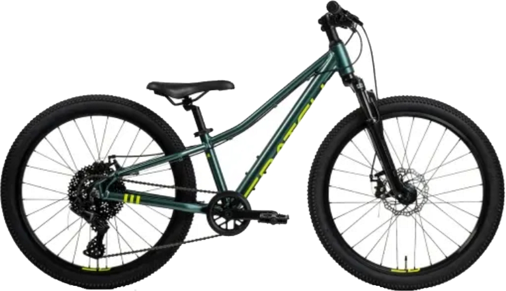 Batch Kids 24 Mountain Bike Spruce GreenThe Batch Kids 24 Mountain Bike is built for young riders ready to take the next leap from sidewalks to singletrack and light trails. With a lightweight 6061 hydroformed alloy frame, kid-tuned geometry, and a 50mm travel suspension fork, this bike bridges the gap between fun and function. This bike gives growing adventurers the tools they need to ride with confidence. The simple and reliable Microshift 1x8 drivetrain offers all the gear range they need without any complexity, while mechanical disc brakes deliver consistent stopping power on dirt or pavement. Kenda 2.1” trail tires add grip without bulk, and the 24” wheels make handling responsive and fun. Whether they’re chasing trail time or just riding with friends, the KM.24 is built to grow with them and built to ride like a real mountain bike.811950031620