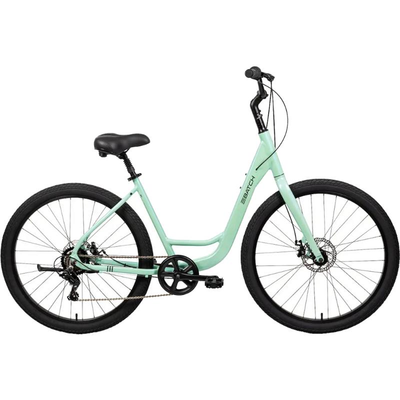 Batch SB.1 27.5’’ Small/Medium High Tide The Batch SB.1 27.5’’ Cruiser Bike uses a low step-thru frame makes getting on and off the bike feel natural and stress-free, especially for everyday riding and frequent stops. An upright riding position, wide saddle, and suspension seatpost work together to smooth out the ride and help you feel comfortable from the start. 27.5” wheels with wide 2.30” tires add stability and control on pavement, bike paths, and neighborhood streets. A 7-speed Shimano drivetrain gives you just enough range to handle gentle hills and longer rides without overthinking it. Mechanical disc brakes provide consistent stopping power, helping you feel confident in changing conditions. Available in High Tide. 811950032108