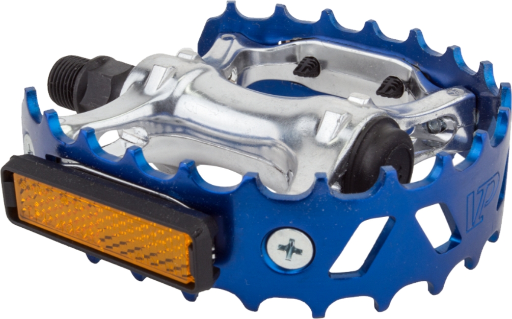 Black-Ops 747 Bear Trap Pedals Anodized BlueThe Black-Ops 747 Bear Trap Pedals are made from a forged alloy body and cage with an oversized oval design. The spindle is chromoly and they are toe clip compatible. Weighs 467g for the pair. These are 9/16’’ axles. Available in Red, Blue, and Gold.888571007457