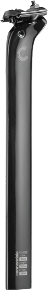 Cannondale C1 Aero 40 v2 Seatpost 365mm 15mm offsetThe Cannondale C1 Aero 40 v2 Seatpost is a compliant and aerodynamic D shaped seatpost for a variety of SuperSix EVO models. It is a fully continuous aero surface that gives the post its refined profile, matching the EVO frame design language and leaves less hardware in the wind. A new barrel nut and thumb-wheel system enable easier access and smoother tilt changes. No long noses, no awkward angles, just a fast and accurate setup with tools that stay clear of the post and rails. The 0mm-offset option leans into modern forward-biased fits, bringing the saddle over the pedals. A clean solution for riders who like their position and are ready to sprint. The C1 Aero 40 seatpost comes in 0 and 15mm offsets to support a wide range of fit preferences. Available in Black.196870078680