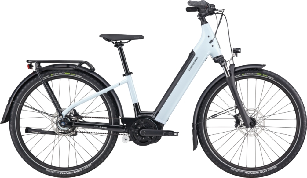Cannondale Mavaro Neo 3 Low Step Thru Medium Dust BlueThe Cannondale Mavaro Neo 3 Low Step Thru is a powerfully elegant pedal assist E-bike with flair to boot. The SmartForm C2 Alloy low step-thru frame is super lightweight and the SR Suntour Mobie A32 fork has 63mm of travel for agility and comfort. The step thru design is easy to throw your leg over. The Nexus 7-speed internal gear hub makes shifting easy and low maintenance. The Bosch Active Line Plus Smart System has a 20-mph max speed and a very clear control screen for operation. The Riderever Attack-U-OE disc brakes have dual 180mm rotors for powerful and controlled braking when you need it. Comes with Axa Compactline 35E front light, Axa Blueline rear light, Tubus rear rack, and full-coverage fenders out of the box. Available in Dust Blue.884603964712