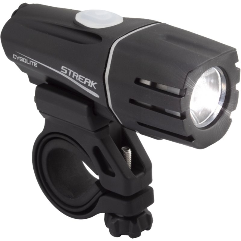 Cygolite Streak 600 USB HeadlightThe Cygolite Streak 600 USB Headlight features 7 lighting modes: High, Medium, Low, SteadyPulse, DayLightning, Walking, and Boost. The SteadyPulse mode alerts motorists with attention-grabbing pulses while constantly lighting your way at night. DayLightning mode's lightning-like flashes makes your presence known in broad daylight. There are side light ports to highlight your presence. There is a low battery indicator for power awareness. The light mode memory recalls last mode used. Engineered to be water resistant for all riding conditions. Includes Locktite handlebar mount and weights only 90g.745025046151