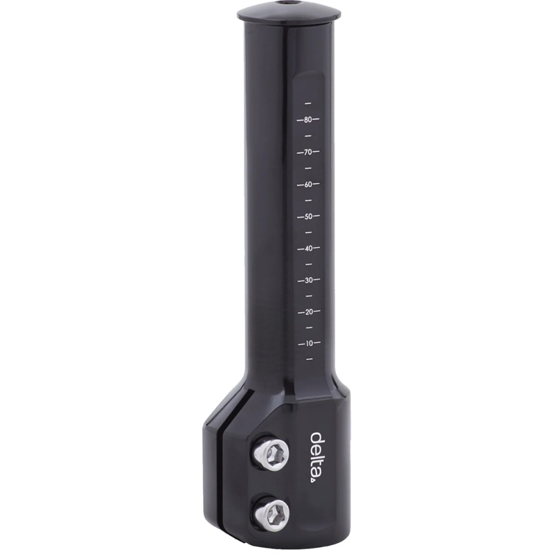 Delta Alloy Stem Raiser Pro BlackThe Delta Alloy Stem Raiser Pro allows you to increase your bar height up to 4.6’’. This is compatible with 1 1/8’’ or 28.6mm threadless steerer tubes. There is an integrated height marker to help you quickly find your ideal handlebar position. Made from Cold Forged 6061 T6 Aluminum for strength. A higher handlebar reduces back pressure and maximizes comfort. Not recommended for installation on carbon fiber steerer tubes. Items purchased after 7/11/2024 are NOT subject to recall.799403291800
