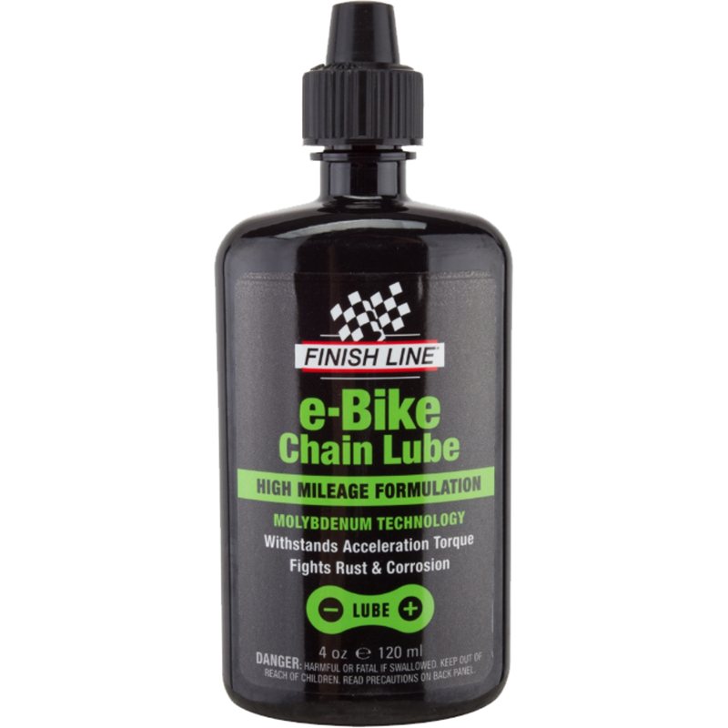 Finish Line e-Bike Chain Lube 4ozThe Finish Line e-Bike Chain Lube is made specifically to help shed mud on chains designed for high torque and pressure from e-Bike electric assist situations. This lube helps to prevent rust and corrosion while shedding dirt. This is a 4oz drip bottle.036121710597