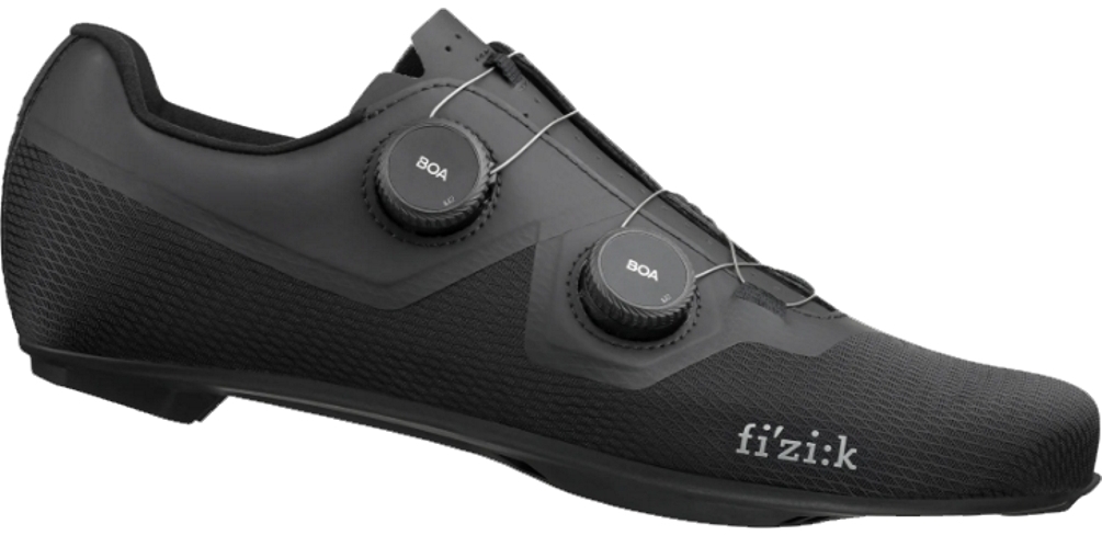Fizik Lyra Road Shoe 43 Coal BlackThe Fizik Lyra Road Shoe is a well-rounded road shoe that balances performance with long-distance comfort. Designed with a modern, ergonomic shape and a slightly wider toe box, Lyra features an engineered mesh upper that is both breathable and durable. The fiber-reinforced outsole ensures efficient power transfer while a dual-dial Li2 BOA Fit System allows for individual adjustments for complete foot support. It is designed with a rounder toe box for a natural, supportive fit with plenty of ventilation from the mesh for a top-notch design using Pro-level DNA to your everyday training shoe. Pair weighs about 259g. Available in Coal Black, White, and Lavender-Mint Green.5940699003126