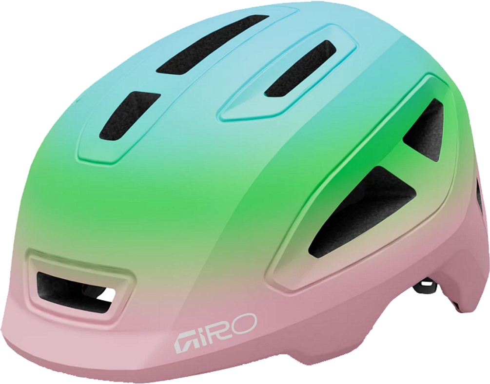 Giro Scamp II Youth Helmet X-Small Matte Pink/GreenThe Giro Scamp II Youth Helmet is the smallest helmet designed for young or future riders, but it still goes big with features and style. Taking design cues from adult helmets like Manifest Spherical, this lightweight helmet features impact-dissipating EPS foam with a sturdy polycarbonate shell, plus 13 vents for efficient cooling power. The Roc Loc Junior fit system provides extra adjustability with a simple-to-use dial for several years of head protection for fast-growing rippers. The XS is designed for riders aged 1 and older while the Small is for riders aged 5 and older. Whether they're rolling along in a trailer or powering the pedals themselves, Scamp II is going to make kids want more bike time. Available in Matte Black/Red, Matte Midnight/Bright Green Ink, Matte Orange Towers, Matte Purple Towers, Matte Purple Libre, and Matte Screaming Teal/Bright Pink.199270037714