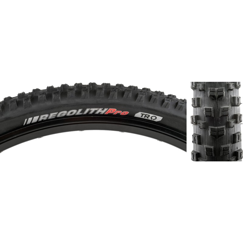 Kenda Regolith Pro 29x2.4 Tire Fold Tubeless Black The Kenda Regolith Pro Tire is an all-new, all-round mountain bike tire developed to set the benchmark in off-road versatility with tubeless compatibility. It is designed to be predictable and able to handle all conditions of riding. The tread has alternating and siped double block tread in the center and alternating chain corner lugs. This pattern also optimizes braking traction on wet and dry days. The center has a fast rolling compound and the sides have a shoulder gripping compound. SCT construction uses an additional sheet of Nylon fabric across the sidewall of the tire to bring out the best when running a tubeless setup. Available in 29x 2.4 size. This tire has 120 TPI and works best between 20-40 PSI. 047853644081