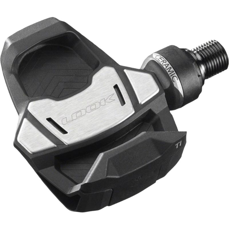 Look Keo Blade Carbon Ceramic Ti 16 PedalsThe Look Keo Blade Carbon Ceramic Ti Pedals are built for aerodynamic performance and has better retention lever durability than the last design. The improved sealed spindle design resists water better with dual sealed ceramic bearings and 1 needle bearing. The 3-part high-grade stainless-steel contact points make the overall structure stronger. The 64mm wide platform with 700mm² contact surface distributes pressure and maximizes power transfer. These pedals come with a 16-degree composite blade retention installed. The body of the pedal is carbon with a titanium spindle. Comes with KEO cleats. Available in Black.3611720212306
