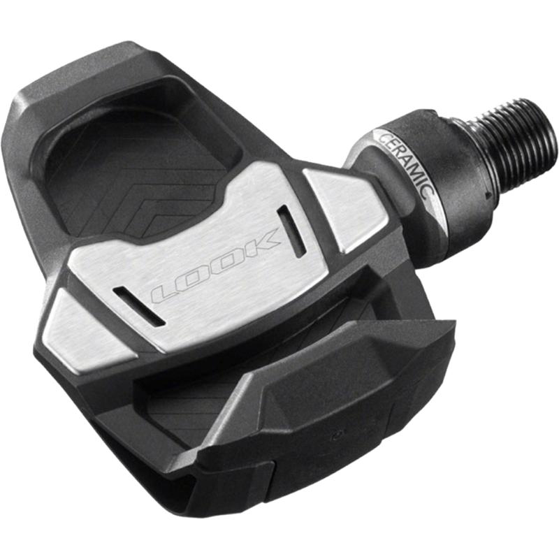 Look Keo Blade Ceramic Carbon 12 PedalsThe Look Keo Blade Ceramic Carbon Pedals are built for aerodynamic performance and has better retention lever durability than the last design. The improved sealed spindle design resists water better with dual sealed ceramic bearings and 1 needle bearing. The 3-part high-grade stainless-steel contact points make the overall structure stronger. The 64mm wide platform with 700mm² contact surface distributes pressure and maximizes power transfer. These pedals come with a 12-degree composite blade retention installed. The body of the pedal is carbon with a chromoly spindle. Comes with KEO cleats. Available in Black.3611720212290