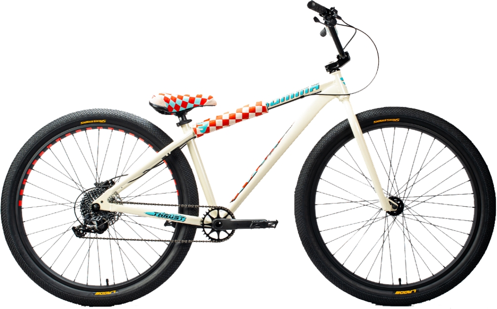 Mafia Bomma Thrust 29’’ IvoryThe Mafia Bomma Thrust 29’’ is the new benchmark street-bike for those who demand an all-round performer for combos and traffic work. With an emphasis on “buy it and ride-it” with no upgrades needed, we took our tried and tested geometry and packaged it into a lighter stiffer machine. We then wrapped that up in a selection of exciting new colorways to form the basis of your next individual creation. The Thrust features Microshift 10-speed, Shimano MT200 Hydraulic Disc Brakes, hollow tech sealed BB, hydro-formed 6061 alloy frame with CNC machined components and peg mounts as standard. The SnakeskinS (Sticky) tires and 29” alloy double wall rims are built for traction and to last.642380616923