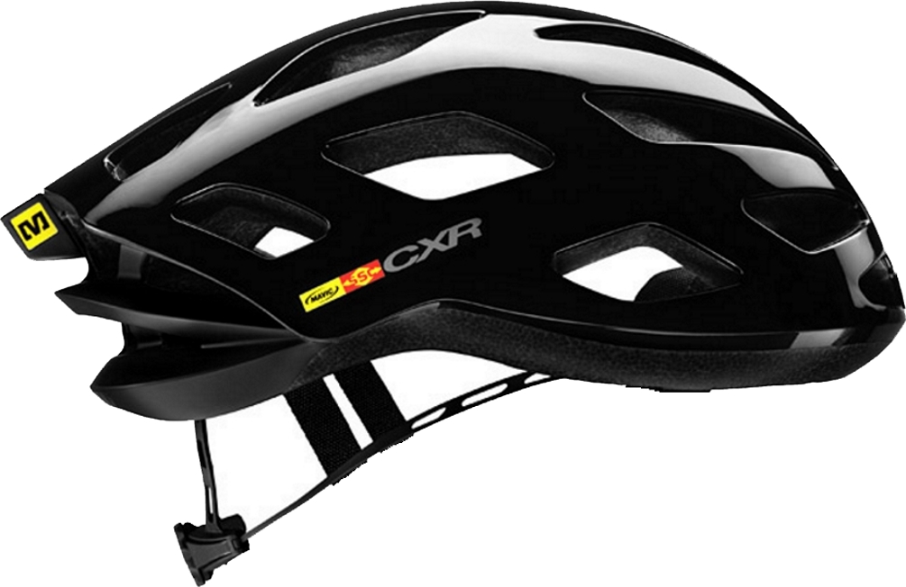 Mavic CXR Ultimate Helmet Small Gloss BlackThe Mavic CXR Ultimate Helmet is the lightest Aero helmet ever created weighing only 250g! With 28 Clima Vents to maintain homeostasis while riding, this helmet has an exceptional value. The Clima Vents boost the aerodynamics of the helmet while evenly and efficiently disbursing the air around the helmet. The CX Shape is engineered to be ridiculously light while maintaining the CPSC Certification. The CXR Fit Pad provides incredible all-day comfort. The Ergo Hold SL Retention System is simple and tiny without losing efficiency. Available in Black and Yellow/Black.887850827427
