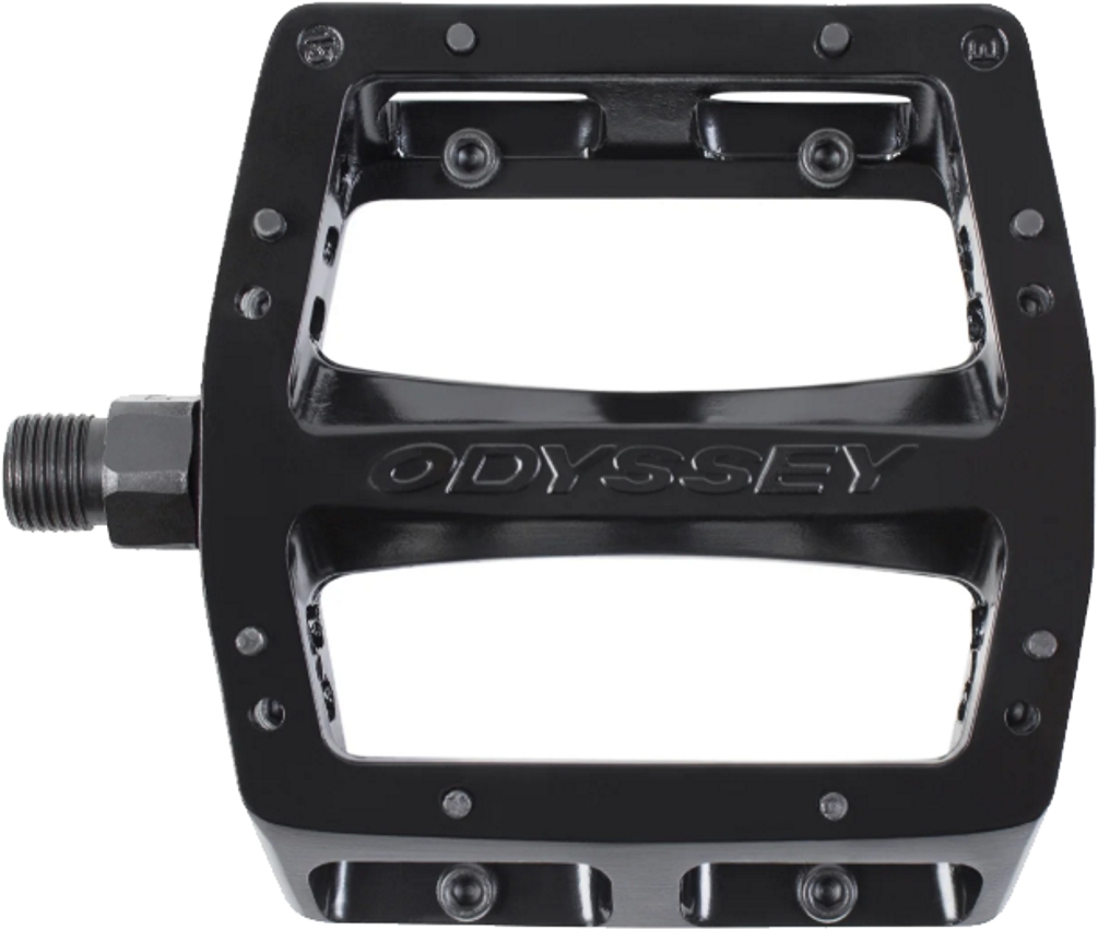 Odyssey Trailmix Looseball Pedals 9/16'' BlackThe Odyssey Trailmix Looseball Pedals are based on the Odyssey JC pedal with a lighter body, larger openings, and a trail inspired shape. The design involves a concave shape, loose ball bearing, and replaceable pins. Compatible with 9/16’’. Has a platform size of 100mm x 94mm. Available in Black and Silver.630950271535