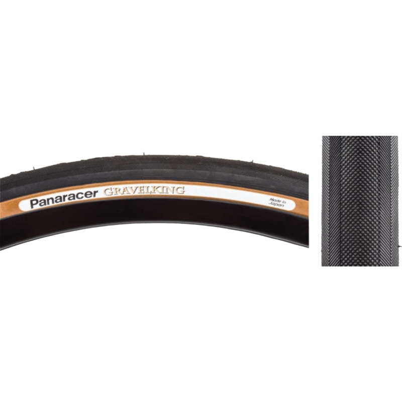 Panaracer GravelKing 700x43c Tire Fold Tubeless ZSG Black/BrownThe Panaracer GravelKing Tire uses a minimal, yet effective file style tread paired with robust volume succeed in less favorable conditions where road tires fail. A true adventurer’s tire the Gravel King is as at home on road as it is on gravel fire roads and tightly packed dirt. Featuring Panaracer’s Natural Rubber Compound for superior grip and a bead-to-bead anti-Puncture casing. The ZSG (Zero Slip Grip) natural rubber compound provides consistent performance through a wide range of temperatures and wears well. The 126tpi Advanced Extra Alpha casing performs well through a wide psi range and minimizes rolling resistance. Actual width of installed tire can vary by 6mm or more depending on inner rim width and inflation pressure. Weighs 410g, folding bead. Made in Japan. Available in 700x43c. Available in Black/Brown.4931253023651