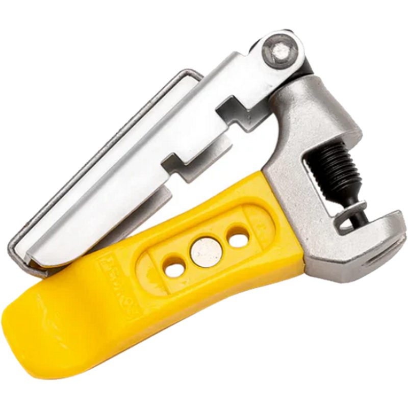 Pedro’s Pack Chain ToolThe Pedro’s Pack Chain Tool is a compact 9-function multi-tool including a chain link tool. Includes 1-13 speed chain tool chain hook 3.23 3.30 3.45 and 4.40mm spoke wrenches Presta valve core tool quick link storage and integrated tire lever handle. Constructed of durable high-strength alloy tool steel for dependability.790983298487