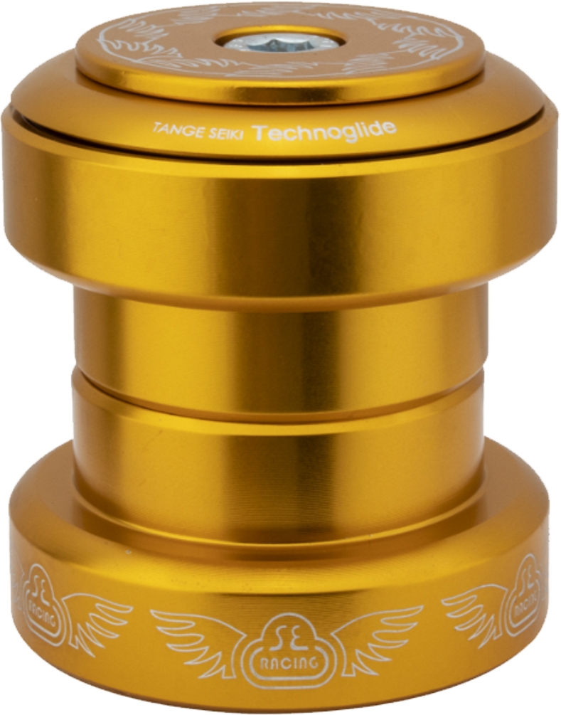 SE Bikes Eluder Headset 1 1/8 GoldThe SE Bikes Eluder Headset is fully sealed and features lightweight and strong 6061-T6 alloy cups with laser etched SE logos. The Tange Seiki sealed bearings feature Technoglide technology for an impressively smooth feel. Custom designed flat top cap features an awesome repeat SE Bikes wing pattern. The size is 1 1/8’’ and available in 5 colors. Available in Black, Blue, Red, Gold, and Silver.785749133737