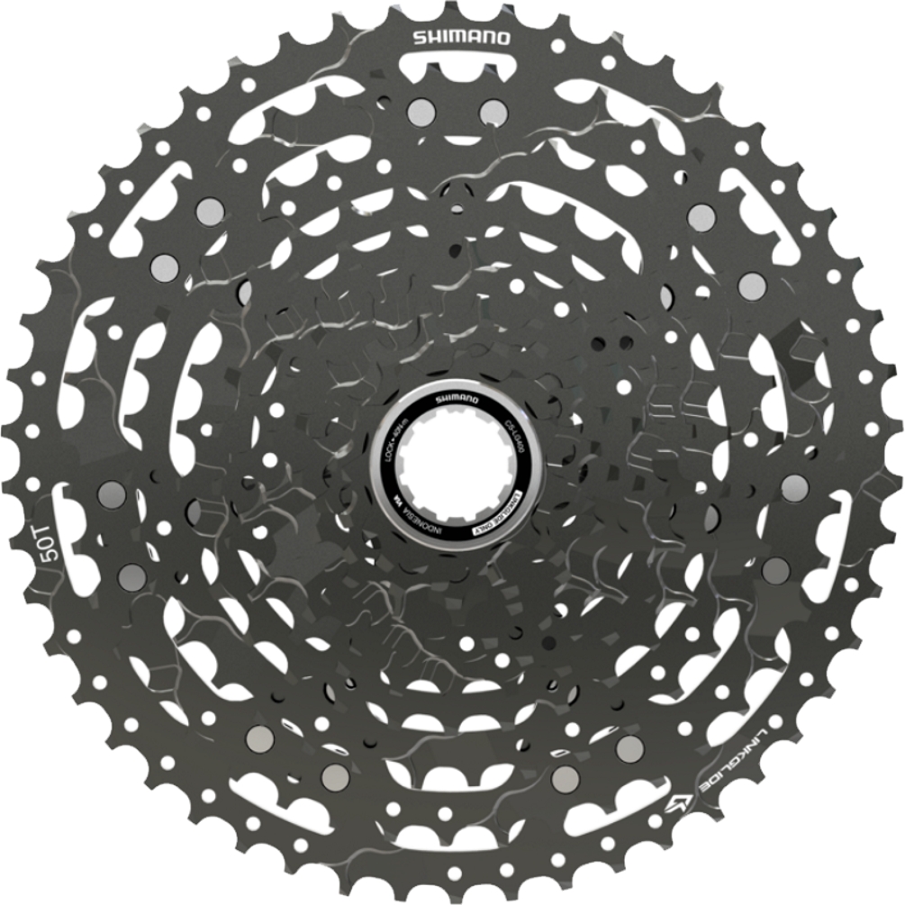 Shimano CS-LG400 Cues LinkGuide HG 11 Speed Cassette 11-50t BlackThe Shimano CS-LG400 Cues LinkGuide HG 11 Speed Cassette uses a premium metallic LINKGLIDE technology provides up to three times the durability of HYPERGLIDE in high chain tension conditions. This model features smooth 2-way shifting, inward and outward, with reduced pedal shock. These cassettes are compatible with LINKGUIDE and HG 11 speed chains. Engineered for use with E-Bikes. Compatible with HG-X11, CN-LG 11-speed, HG and Linkglide 11 Speed chains. Available in in 11-45t or 11-50t.192790171746