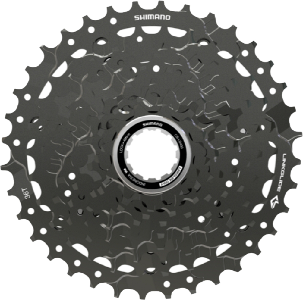 Shimano CS-LG400 Cues LinkGuide HG 9 Speed Cassette 11-36T BlackThe Shimano CS-LG400 Cues LinkGuide HG 9 Speed Cassette uses a premium metallic LINKGLIDE technology provides up to three times the durability of HYPERGLIDE in high chain tension conditions. This model features smooth 2-way shifting, inward and outward, with reduced pedal shock. These cassettes are compatible with LINKGUIDE and HG 11 speed chains. Engineered for use with E-Bikes. Compatible with HG-X11, CN-LG 11-speed, HG and Linkglide 11 Speed chains. Available in in 11-36t, 11-41t, or 11-46t.192790171708