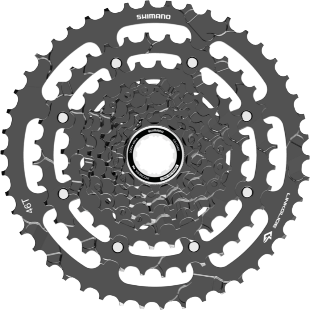 Shimano CS-LG400 Cues LinkGuide HG 9 Speed Cassette 11-46t BlackThe Shimano CS-LG400 Cues LinkGuide HG 9 Speed Cassette uses a premium metallic LINKGLIDE technology provides up to three times the durability of HYPERGLIDE in high chain tension conditions. This model features smooth 2-way shifting, inward and outward, with reduced pedal shock. These cassettes are compatible with LINKGUIDE and HG 11 speed chains. Engineered for use with E-Bikes. Compatible with HG-X11, CN-LG 11-speed, HG and Linkglide 11 Speed chains. Available in in 11-36t, 11-41t, or 11-46t.192790237985