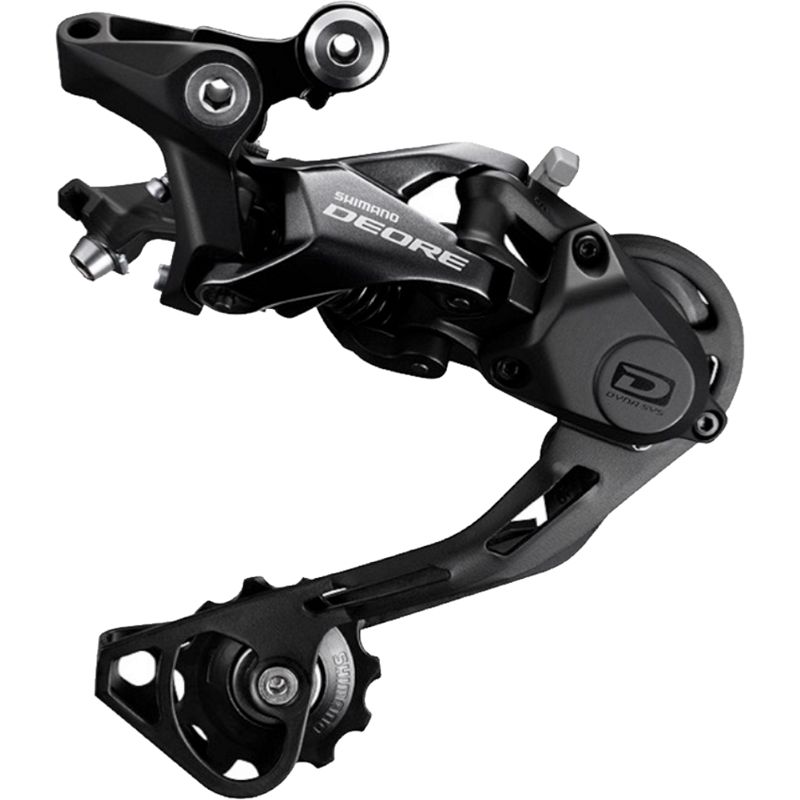 Shimano Deore RD-M6000-GS 10-speed Rear Derailleur Medium CageThe Shimano Deore RD-M6000-GS 10-speed Rear Derailleur is designed for aggressive trail riding and uses SHIMANO SHADOW RD PLUS technology for improved chain stability and retention. This model is for 2x10 setups. The Shadow RD+ chain stabilizer system minimalizes chain slap. The Utilizes Shadow RD Plus offers a quieter drivetrain and reduces chain slap. The Shadow RD Plus provides a simple solution for chain drop and is lighter and efficient that roller type chain devices. The Optislick cable for a light shifting effort and smooth shifting. This is the medium cage version. This is meant for a 10 Speed system with a minimum sprocket of 11 teeth and a maximum sprocket of 42 teeth with a double crank setup. The front difference is 10T and the total capacity is 41T. Available in Black.689228413245