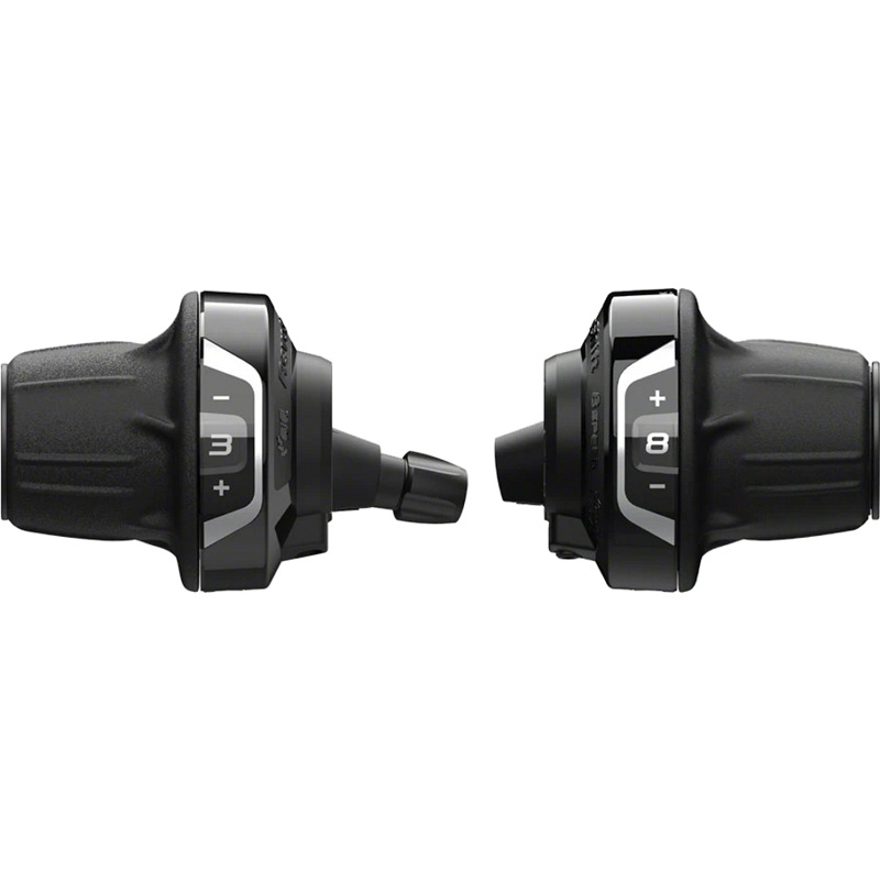 Shimano Tourney RevoShift SL-RV400 Twist Shifter Set 3x8 SpeedThe Shimano Tourney RevoShift SL-RV400 Twist Shifter Set has a comfortable ergonomic grip design and lighter shifting operation for riders with smaller hands. It's easy-to-read display and the satisfying "click" of SIS INDEX shifting helps newcomers track gear position. The set comes with cables and housing, and easy to rear gear position indicators. Available in 3x8 speeds.192790898360