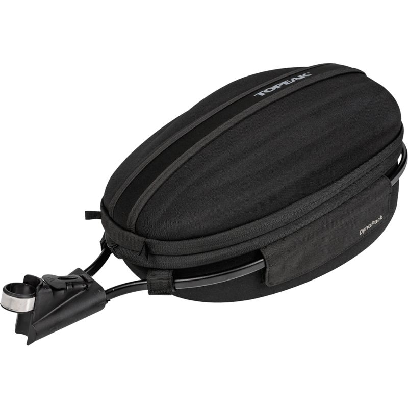 Topeak Dynapack DX TC2713B2The Topeak Dynapack DX is the larger version of our DynaPack® offers near TrunkBag space without needing a rack and features an expandable top to hold a helmet, shoes or other large objects. Shaped from rigid EVA foam and 600 denier polyester for a sleek, aerodynamic shape. There is a divided main compartment, and one zippered compartment to handle organizational duties. The lightweight aluminum exo-frame features a quick release mount that attaches to seatposts measuring 24.5 - 34.9mm. Other features include a convenient carrying handle and 3M™ reflective strip and rear light clip for extra safety. The dimensions are 45x24x23.3cm and it weighs 720g.883466039476